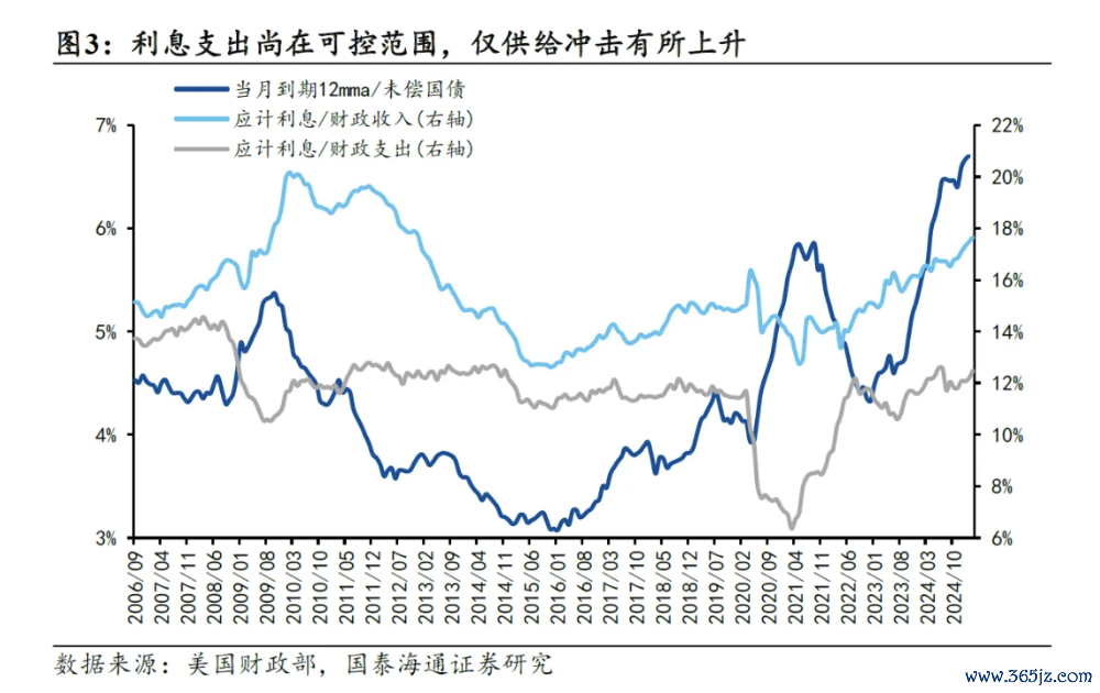 美债到期压力增加并不等于利率上行,美债供需结构尽管有一定恶化但总体相对健康。美债利率上行的主要逻辑在于:在赤字率易上难下的环境下,政策不确定性或进一步加重市场对财政可持续性的质疑。