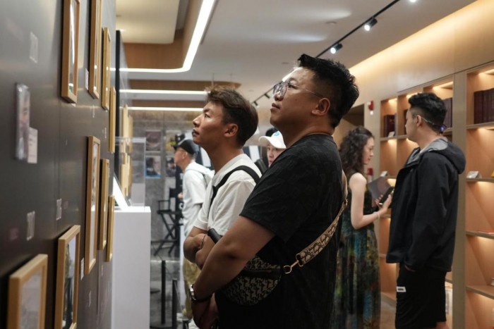 在老舍剧场前厅举办的影视文化收藏展由“世界电影”“中国电影”两大主题板块构成,以中外优秀电影作品创作时间为线索,通过书信、手稿、文件、签名照片及收藏卡等丰富载体形态,近距离为观众展示了50余位中外传奇影人的亲笔手迹原件。一件件封存经典光影时刻呼吸和心跳的珍贵展品,带领观众纵览世界电影130年和中国电影120周年的光影长河。