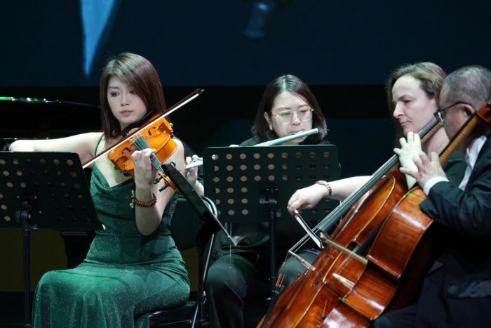 作为展览的听觉延伸,中歌爱乐交响乐团为观众带来了又一场文化盛宴。著名小提琴演奏家郑义、大提琴演奏家逯泳、黑管演奏家刘顺江等国家一级演奏员,以及来自俄罗斯的小提琴演奏家Anna Ganin等演奏名家倾情携手,以动人旋律带领观众重温经典电影场景,不仅唤起了人们对电影艺术的美好回忆,同时也以音乐为“画笔”,将此次展览中所关联的诸多展品,以及电影所蕴含的深厚文化底蕴,为观众勾勒出了一幅美妙的光影诗篇。
