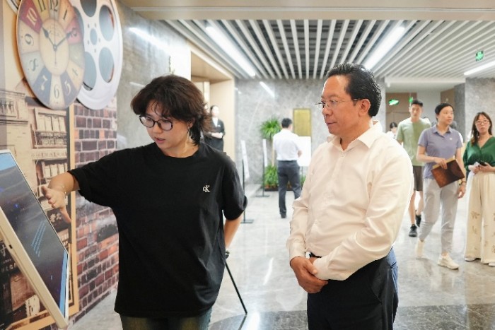 图5 市文联党组书记、常务副主席马新明观摩AI技术在电影制作中的应用演示