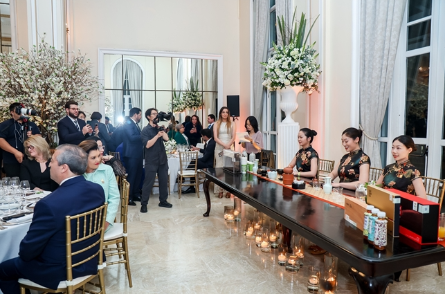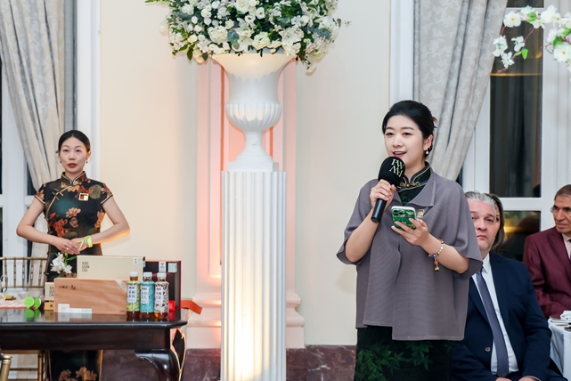 小罐茶品牌中心总监李冰在晚宴现场受邀进行分享。她表示:“一杯茶里见中国。通过这次茶文化出海,小罐茶希望能让世界透过一片叶子,看见中国的待客之道、创新之魂、共赢之志。”